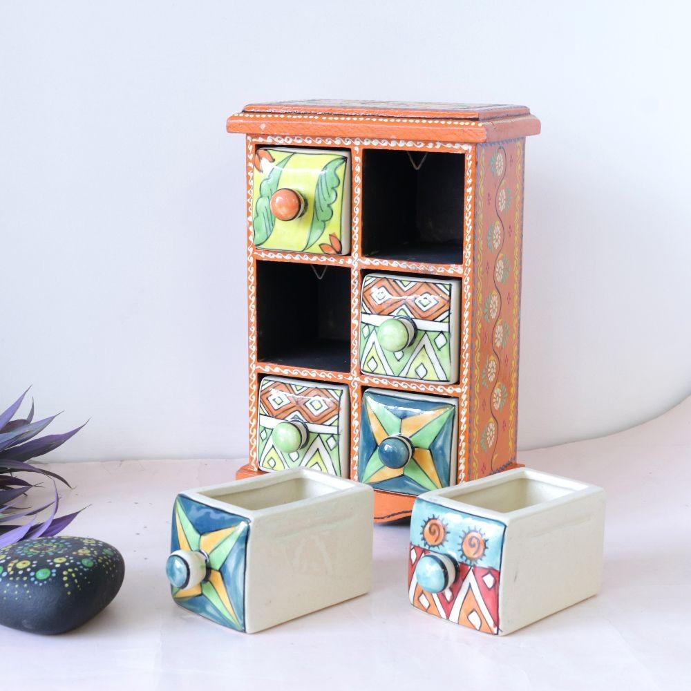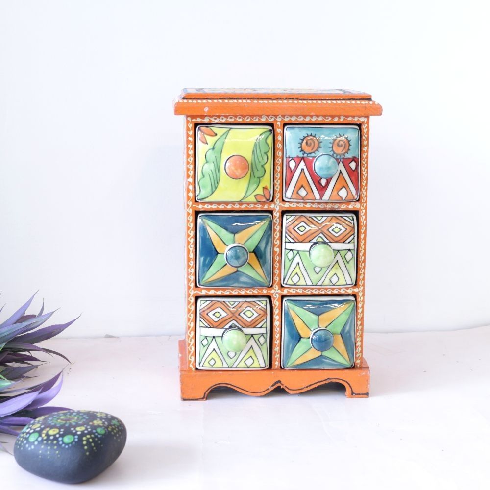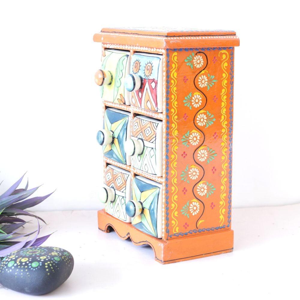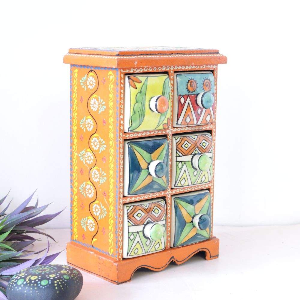 Handmade 6 Drawer Box Hand painted Wooden Jewelry Box