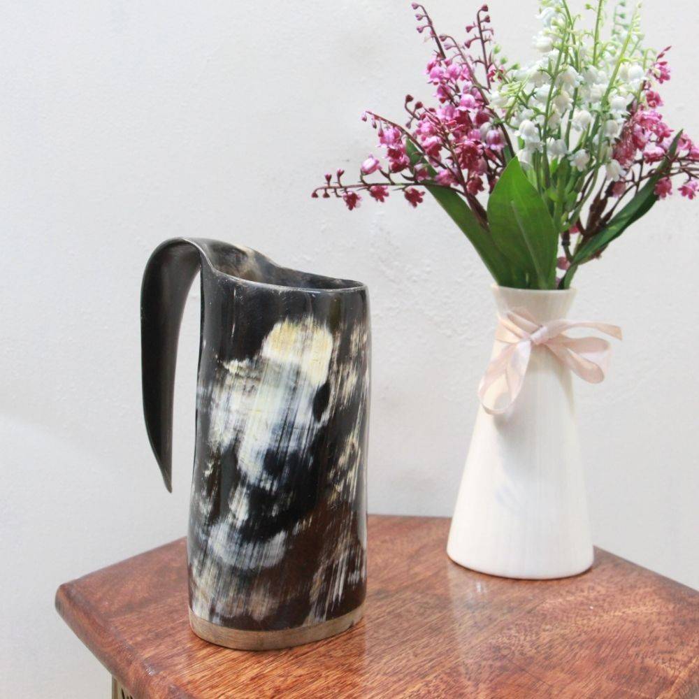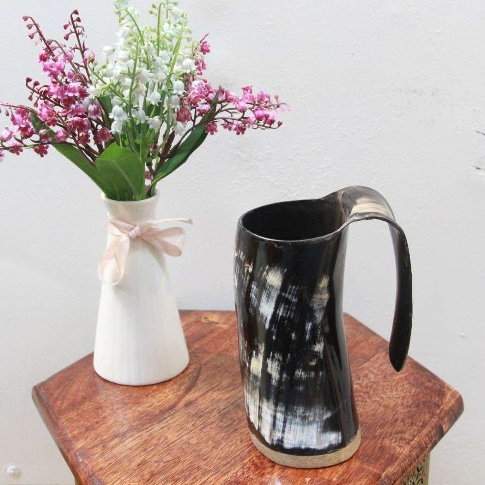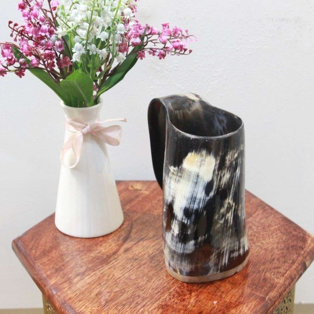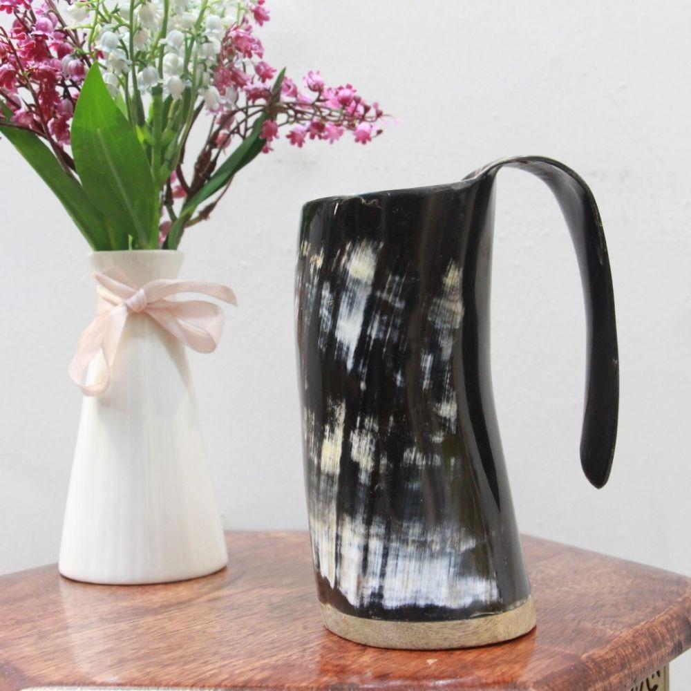 Enjoy your favorite beverages in style with the Horn Drinking Mug Tankard. Perfect for beer, wine, water, or mead. A unique and sturdy cup for every occasion.