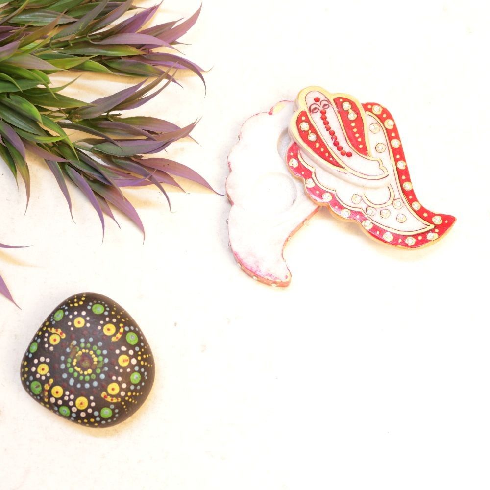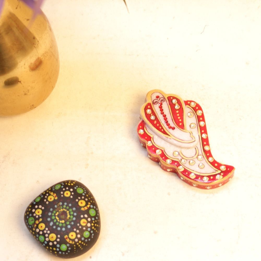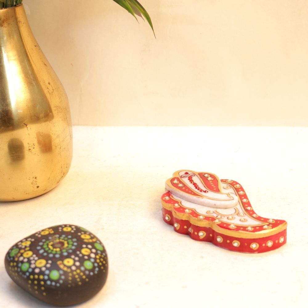 Lord Ganesha-shaped Marble Haldi Kumkum Box (3x1x5 inches) for puja rituals. Elegant and unique design, perfect for storing kumkum, haldi, and other sacred offerings.