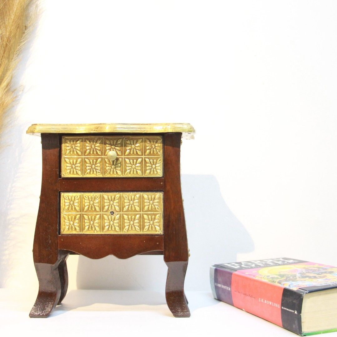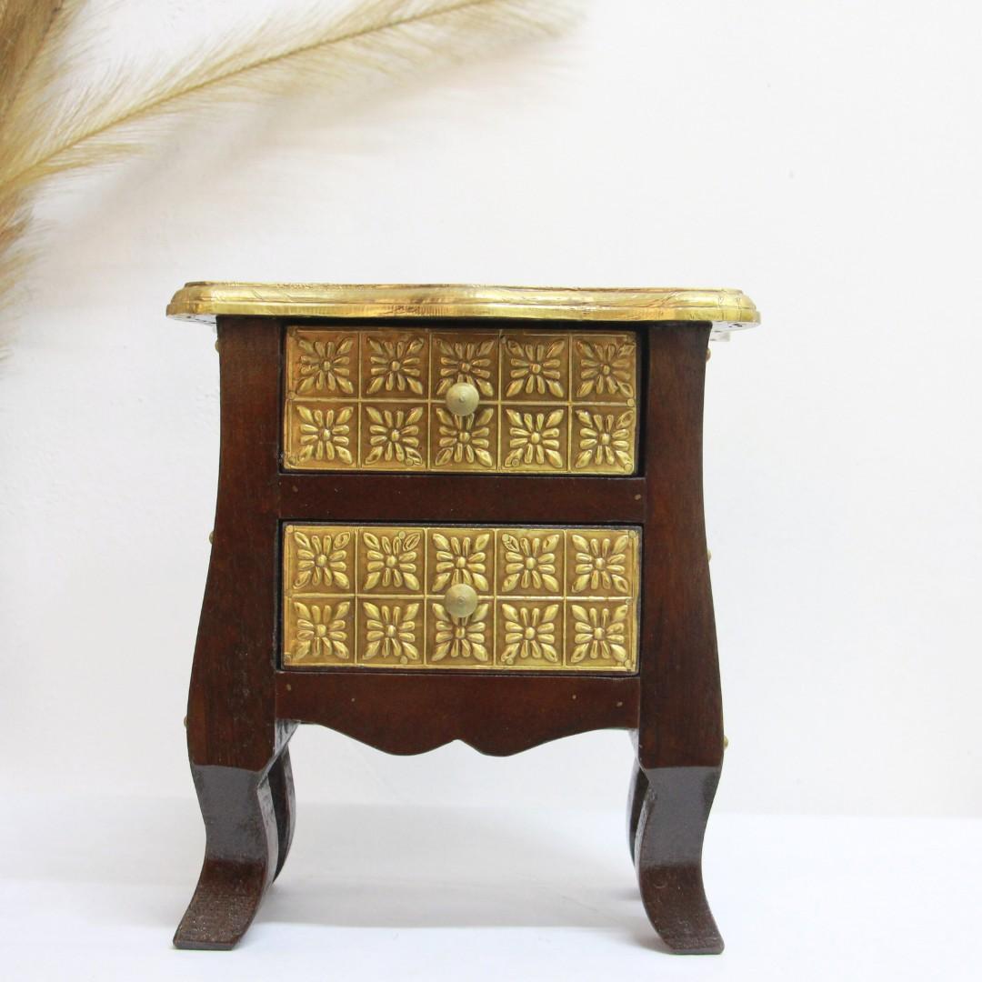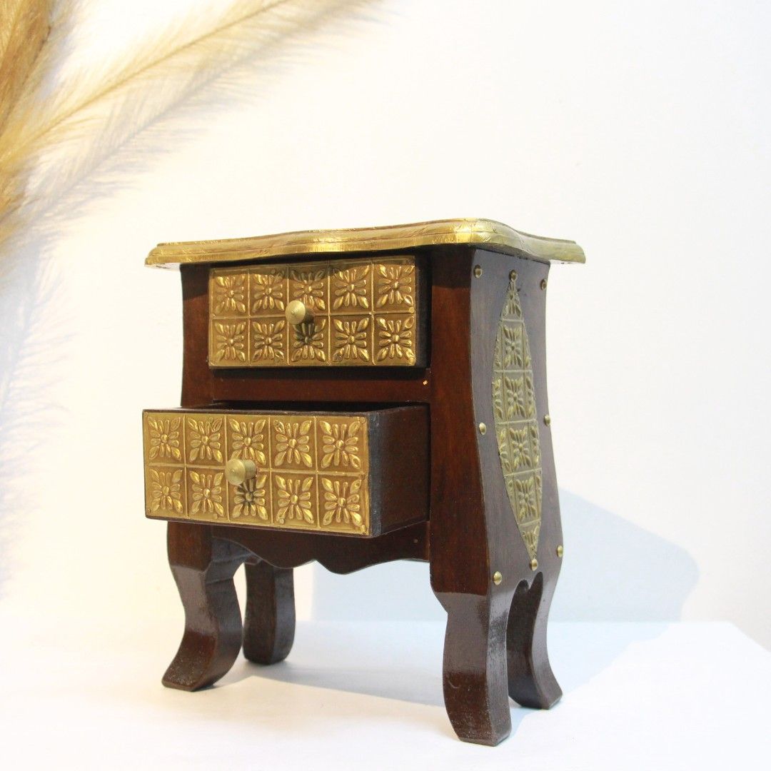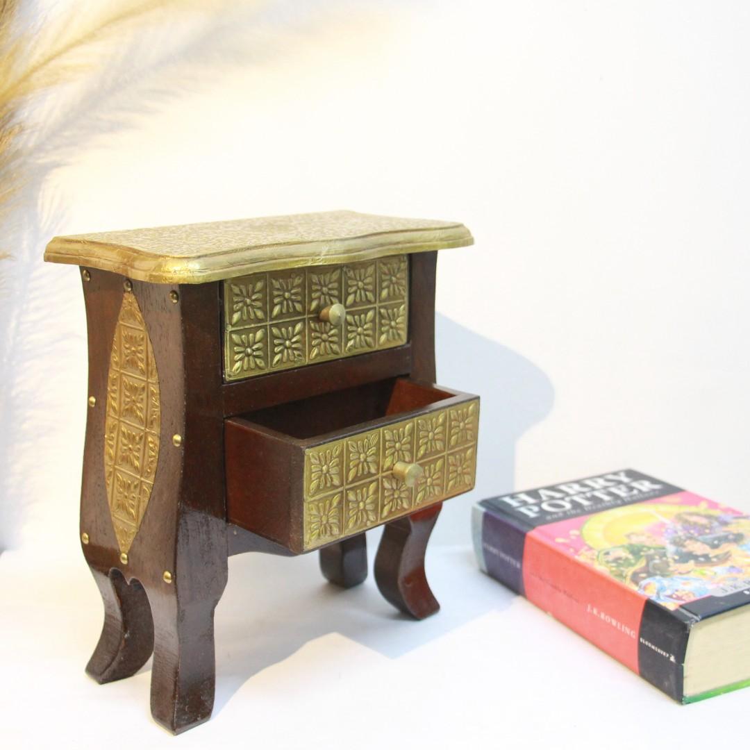 Handmade Wooden Painted Brass Two Rack Small Almirah, 8x9x4 inches. A compact and elegant storage solution, perfect for organizing and enhancing your home or office decor.